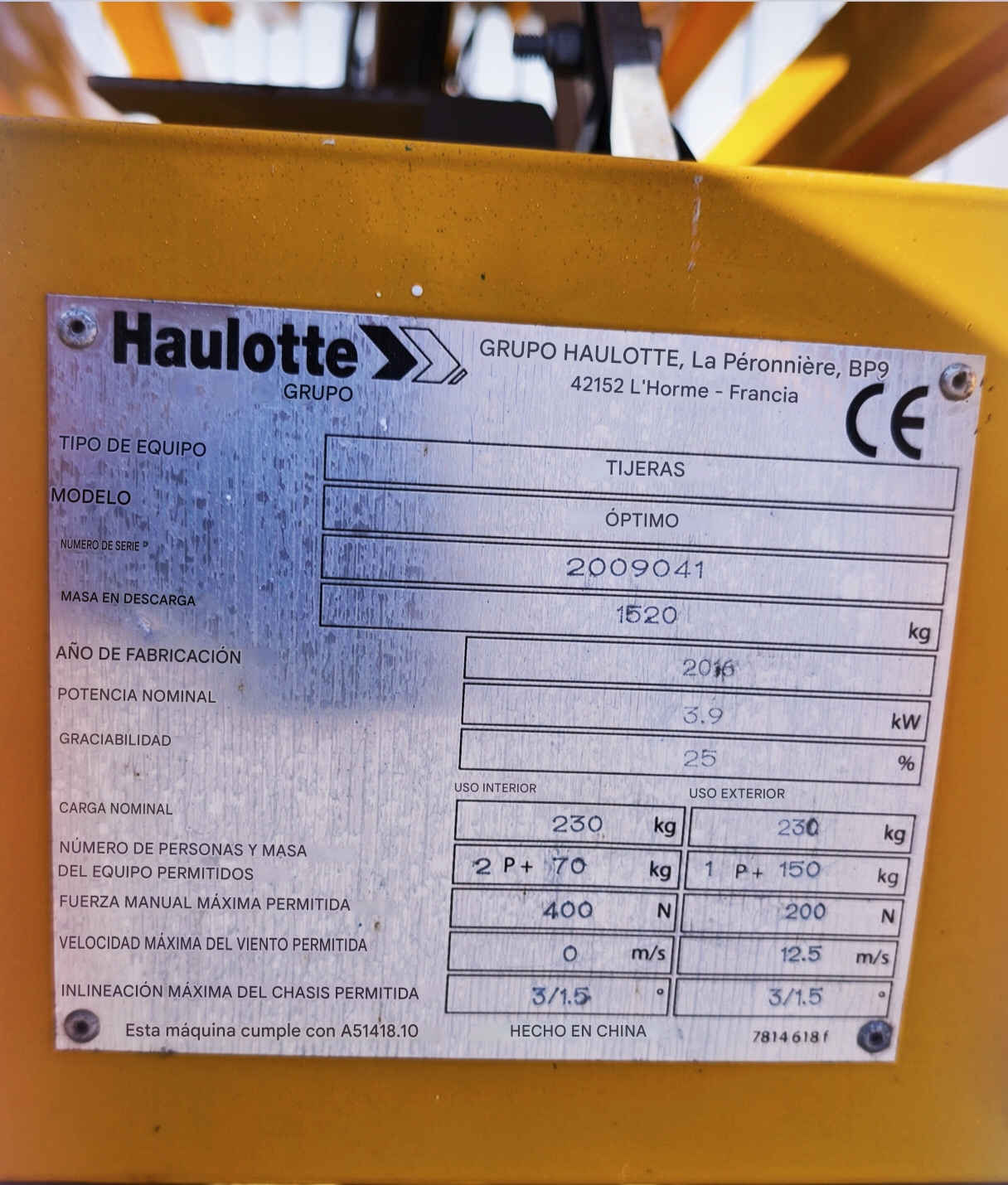 - EQUIPO: PLATAFORMA ELEVADORA MÓVIL DE TIJERA